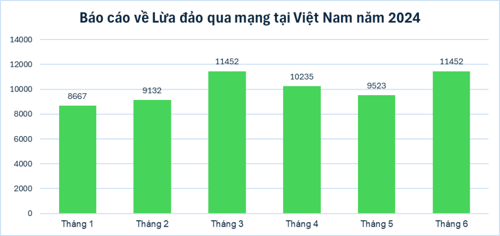 Báo cáo của A05 cho biết, chỉ trong 9 tháng đầu năm 2024 đã có hơn 22.200 phản ánh liên quan đến lừa đảo trực tuyến, tăng gấp rưỡi so với cùng kỳ năm trước. Mỗi ngày, hàng trăm người dân bị tấn công qua tin nhắn, cuộc gọi, hoặc mạng xã hội. Trung bình cứ 220 người dùng smartphone thì có 1 người trở thành nạn nhân, và 70% người dân nhận ít nhất một cuộc gọi hoặc tin nhắn lừa đảo mỗi tháng.