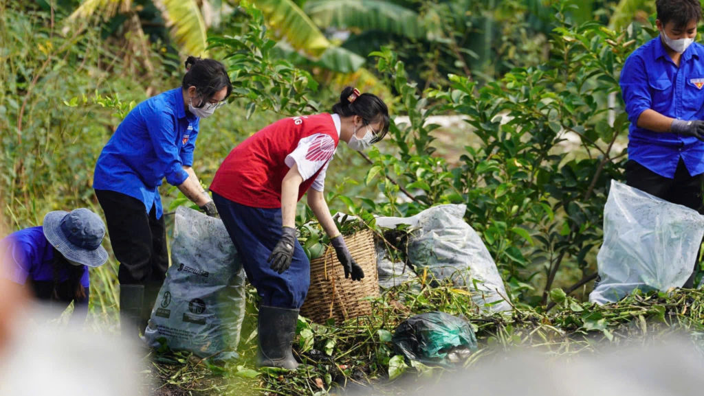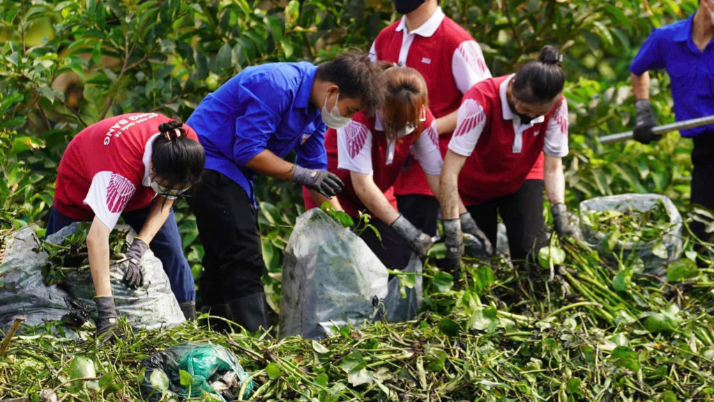 Hình ảnh sinh viên HIU tham gia dọn dẹp kênh rạch