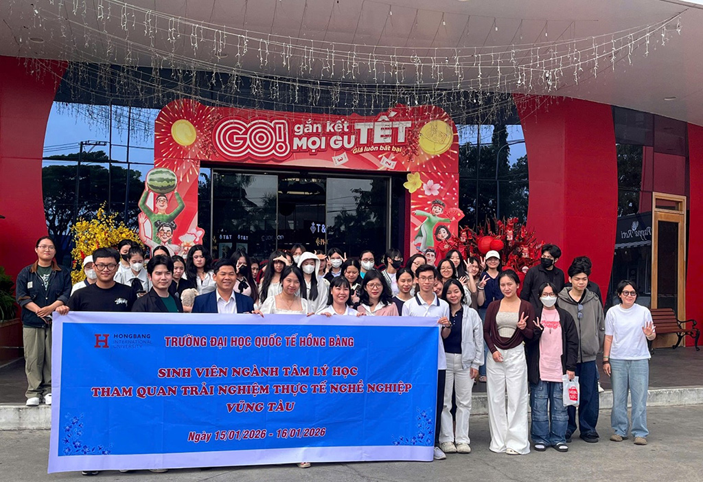 Ngày 16/01/2026, đoàn sinh viên ngành Tâm lý học các khóa K23, K25 của Trường Đại học Quốc tế Hồng Bàng, do TS. Trịnh Viết Then – Trưởng Bộ môn Tâm lý học, cùng các giảng viên ThS. Lê Thị Ngọc Thương, TS. Vũ Văn Hòa, ThS. Võ Nguyễn Tiến Mẫn hướng dẫn, đã có một chuyến trải nghiệm thực tế đầy thú vị tại Siêu thị GO! Bà Rịa.