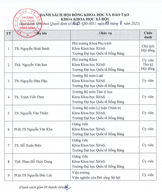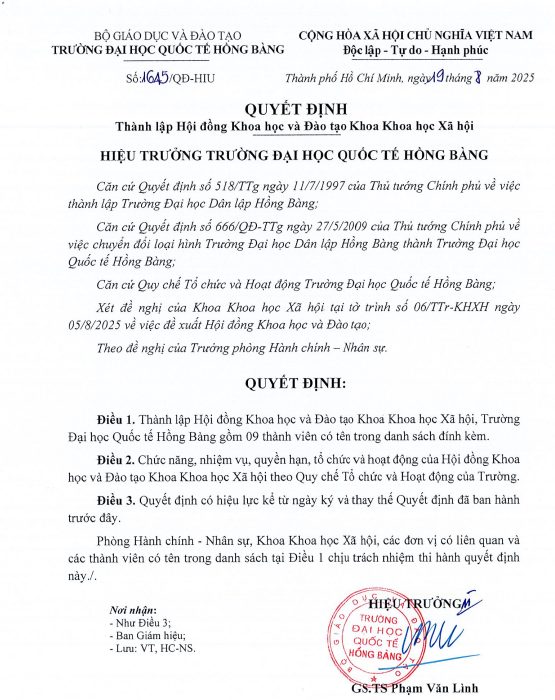 Quyết định thành lập Hội đồng Khoa Khoa Học Xã Hội