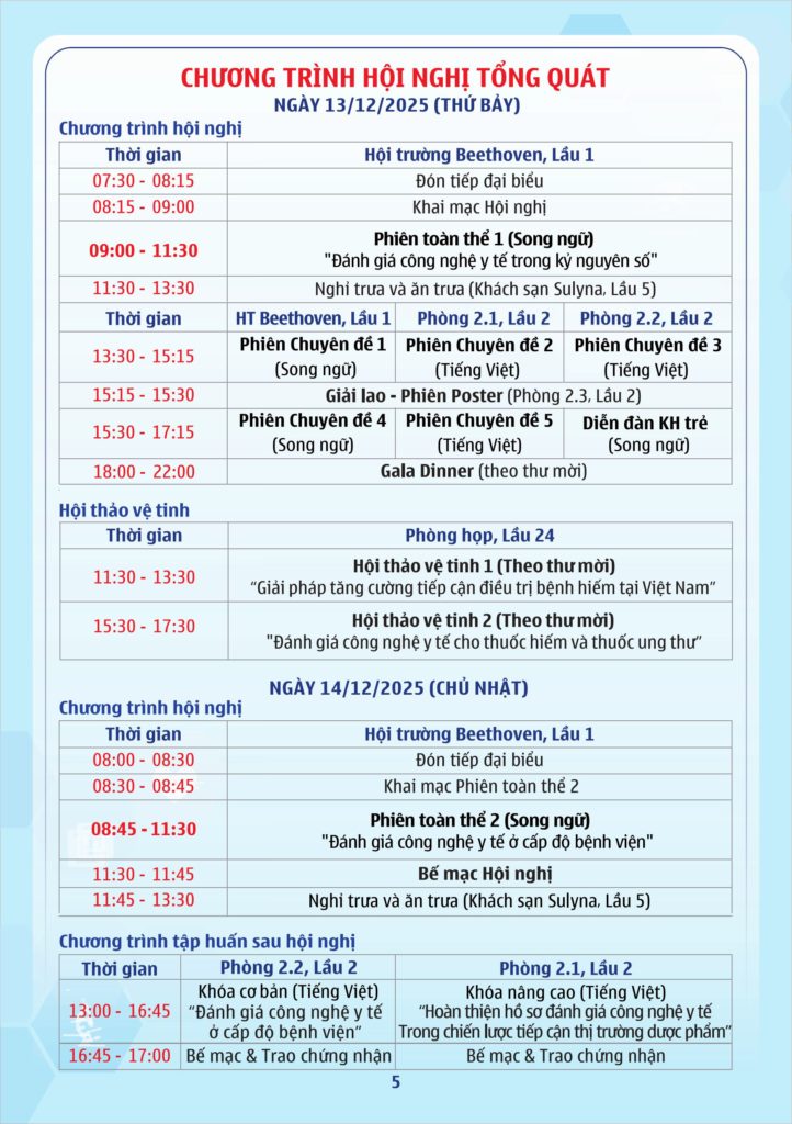 – Phiên toàn thể (song ngữ) tập trung vào xu hướng HTA toàn cầu, Real-world Evidence và Big Data.