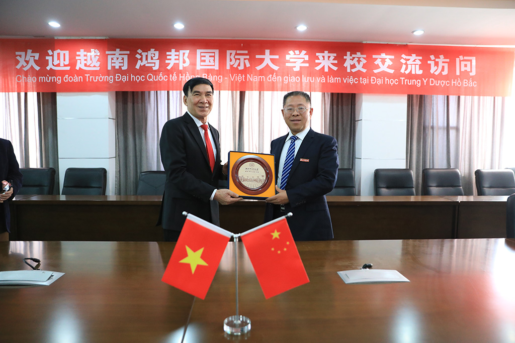 Đón tiếp đoàn HIU có GS. Trần Cương – Hiệu trưởng Đại học Trung y Dược Hồ Bắc, ông Bành Duệ – Viện trưởng Viện Châm cứu và Chấn thương Chỉnh hình, bà Thiệu Ngọc Bình – Giám đốc Văn phòng Đảng – Chính quyền và ông Diêu Quần Phong – Trưởng phòng Hợp tác và Giao lưu Quốc tế.