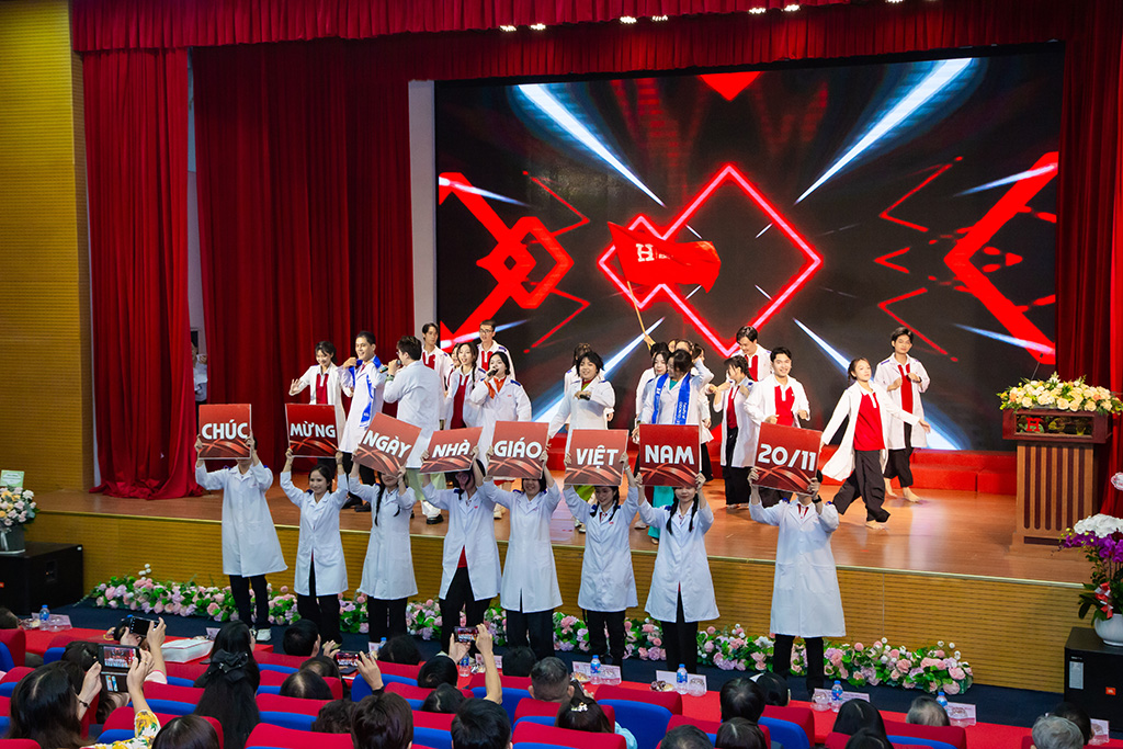 Lễ kỷ niệm mang chủ đề “Người gieo mầm xanh”, mở đầu bằng các tiết mục văn nghệ của giảng viên và sinh viên, tạo nên không khí gần gũi và ấm áp. Video tri ân được trình chiếu đã chạm đến cảm xúc của người xem bằng những hình ảnh quen thuộc: thầy cô trên bục giảng, trong phòng thí nghiệm, tại bệnh viện, hay cùng sinh viên vượt qua khó khăn trong từng bài học, từng ca trực, từng đồ án.