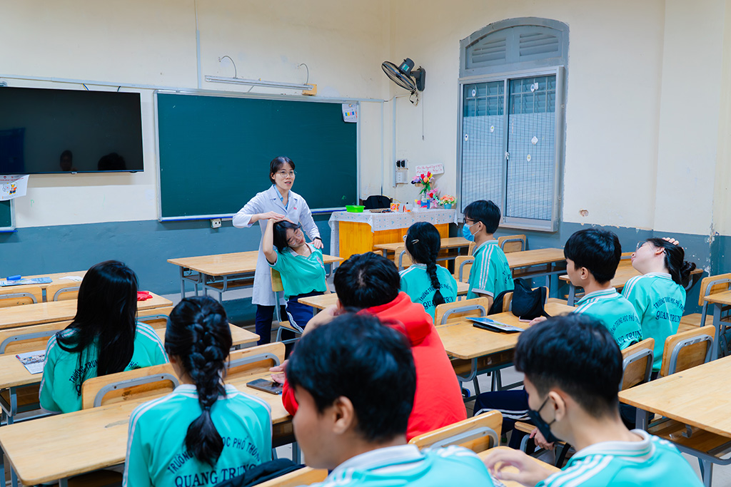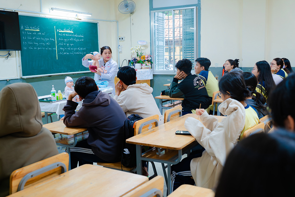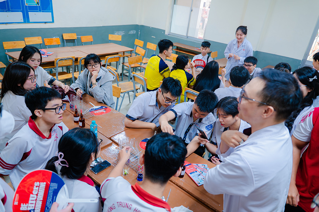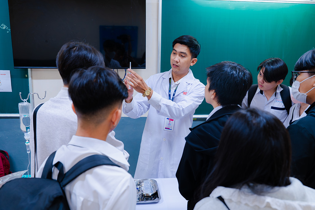 Học sinh cũng được tiếp cận một số hoạt động cơ bản của nhóm ngành sức khỏe như đo sinh hiệu, chăm sóc trẻ sơ sinh, quan sát quy trình xét nghiệm hay tìm hiểu ứng dụng của hợp chất thiên nhiên trong sản phẩm mỹ phẩm. Những trải nghiệm này giúp các em hiểu rõ hơn bức tranh nghề nghiệp trong lĩnh vực y tế và nhìn thấy khả năng mở rộng sang các mô hình sản phẩm chăm sóc sức khỏe, làm đẹp.