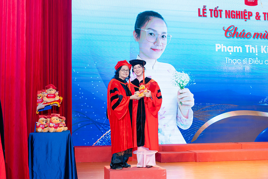 Đáng chú ý, đợt trao bằng lần này ghi nhận hai dấu mốc quan trọng trong đào tạo sau đại học của HIU. Nhà trường trao bằng tiến sĩ khóa đầu tiên của ngành Việt Nam học, với nghiên cứu sinh hoàn thành và bảo vệ luận án đúng thời hạn; đồng thời trao bằng thạc sĩ khóa đầu tiên của ngành Tổ chức quản lý dược, ngành đào tạo đáp ứng nhu cầu ngày càng gia tăng về nguồn nhân lực quản lý trong lĩnh vực dược và hệ thống y tế.