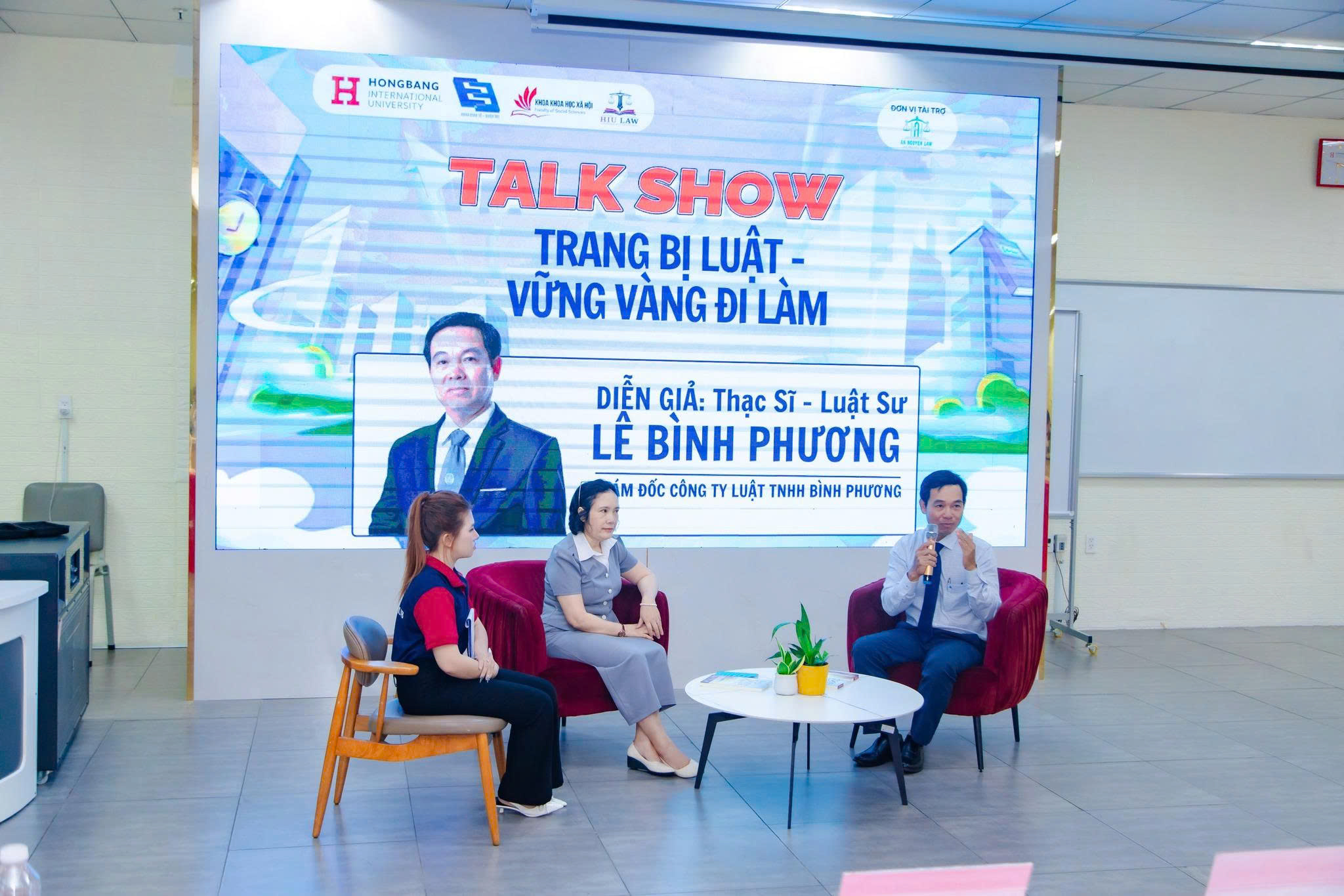 Chương trình tập trung vào các nội dung gần gũi với thực tế như hợp đồng lao động, bảo hiểm xã hội, tiền lương và những rủi ro pháp lý thường gặp khi đi làm. Đồng thời, talkshow còn tạo không gian trao đổi cởi mở, giúp sinh viên dễ dàng đặt câu hỏi, chia sẻ tình huống và tiếp cận pháp luật một cách dễ hiểu.