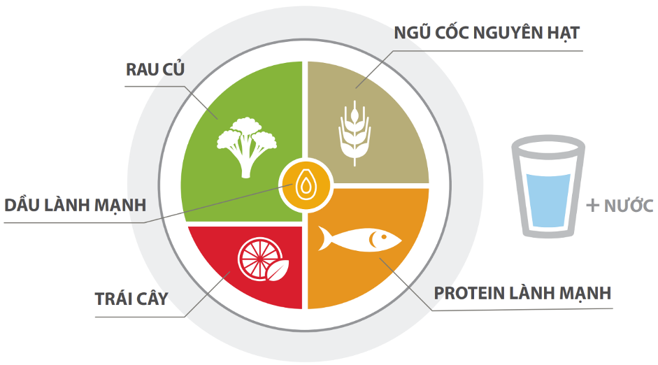 • Ưu tiên: Tăng cường rau củ, trái cây, ngũ cốc nguyên hạt, các loại đậu và hạt. Lựa chọn nguồn protein lành mạnh từ thực vật hoặc protein động vật nạc như cá, hải sản, gia cầm không da và sữa ít béo.