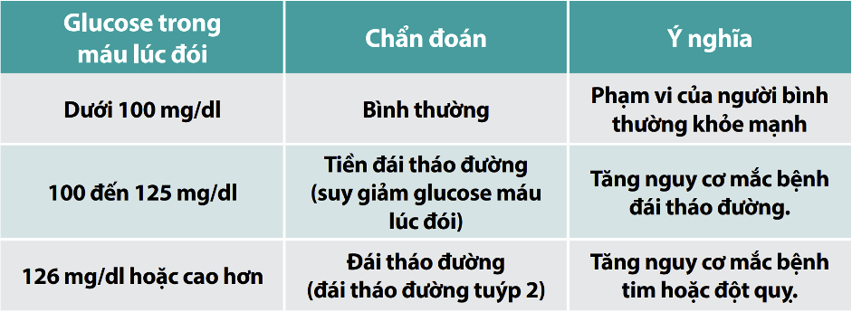 • Chỉ số mục tiêu: Đường huyết lúc đói dưới 100 mg/dL được coi là bình thường. Chỉ số từ 126 mg/dL trở lên cảnh báo bệnh đái tháo đường tuýp 2.